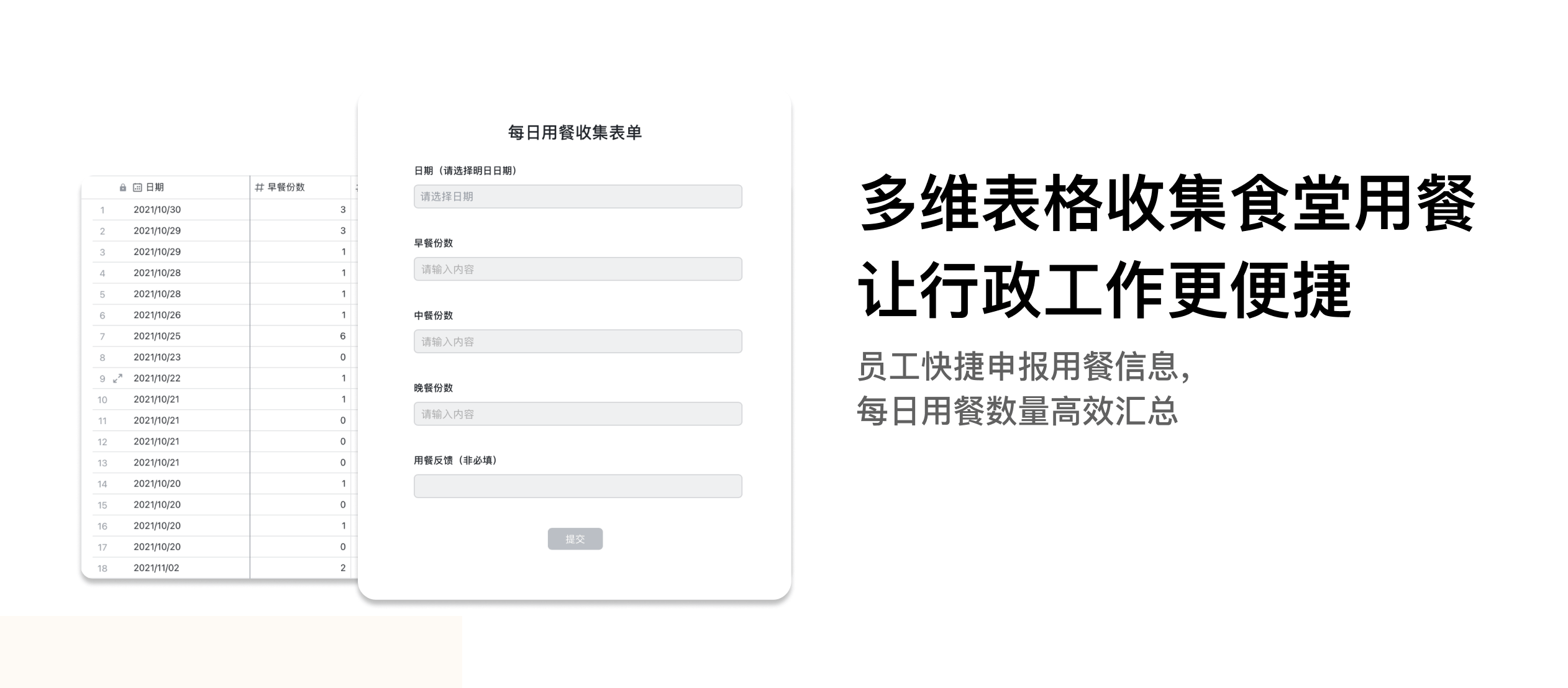 飛書文檔一改中海地産的信息傳遞方式。以往,在行政工作中需收集大量信息如員工資料、員工反饋等,并需細緻到人。信息是從員工到部門的層層遞進,不但周期長,還極易出錯,行政人員疲于信息的粘貼彙總。現在使用飛書文檔中的多維表格,部門或者員工隻需填寫對應表單即可完成信息上報,所有信息自動彙總一處。現在中海地産中的訂餐收集、防疫信息、防疫日報、社團報名都使用飛書文檔收集,免去了行政人員的繁瑣通知彙總,快速掌握一線信息。