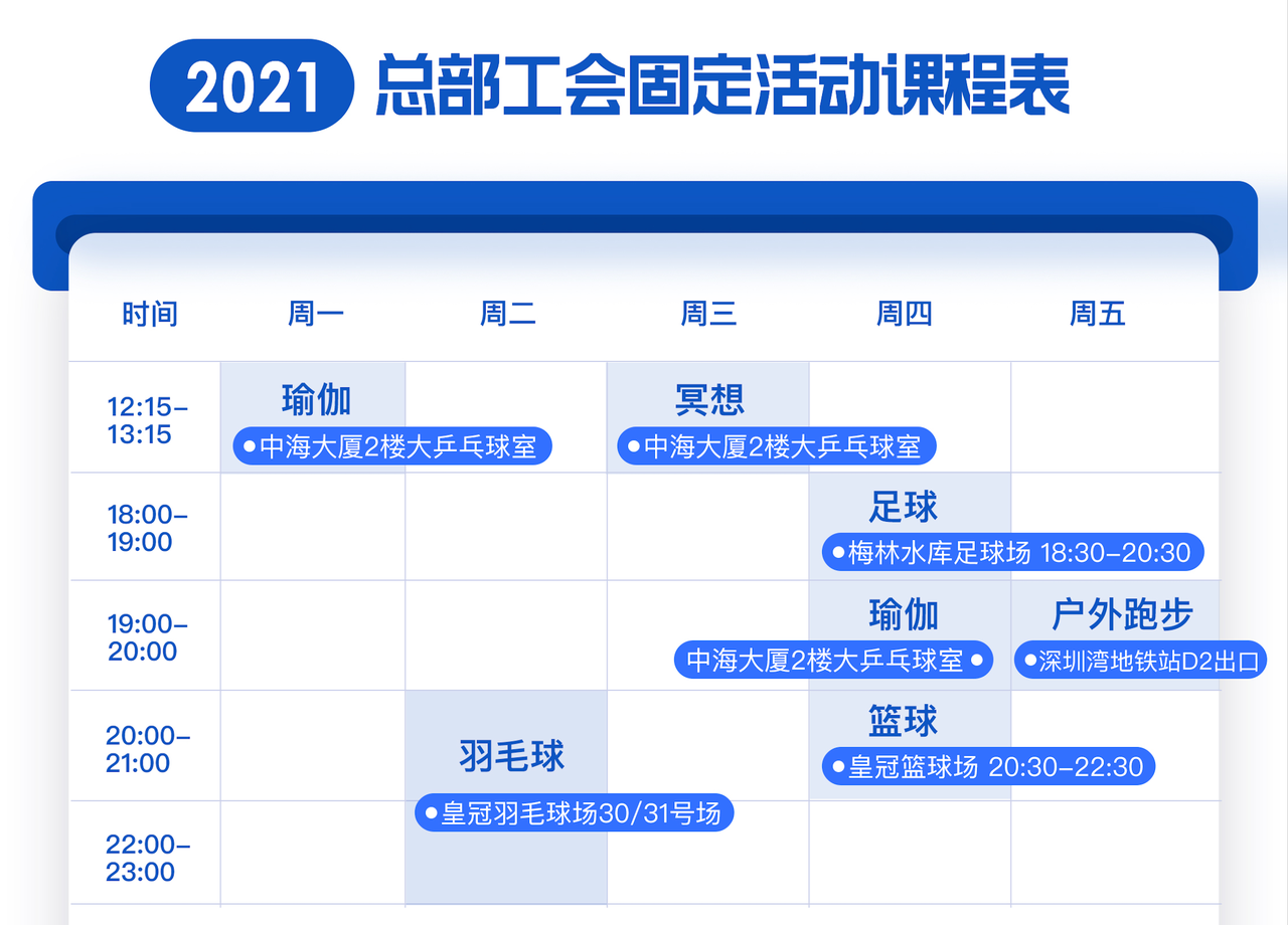 飛書的日曆不僅僅是日程的管理,還能是企業活動的“公告闆”。在中海地産,設立了大量的體育社團活動以提升員工的身心健康,并增加員工間的非正式溝通,提高團隊協作關系。