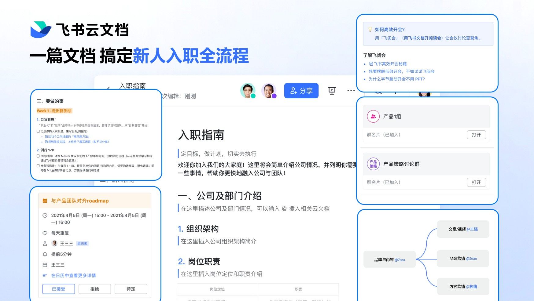 很多客戶已經在用飛書文檔取代原來冗長的入職流程,比如: